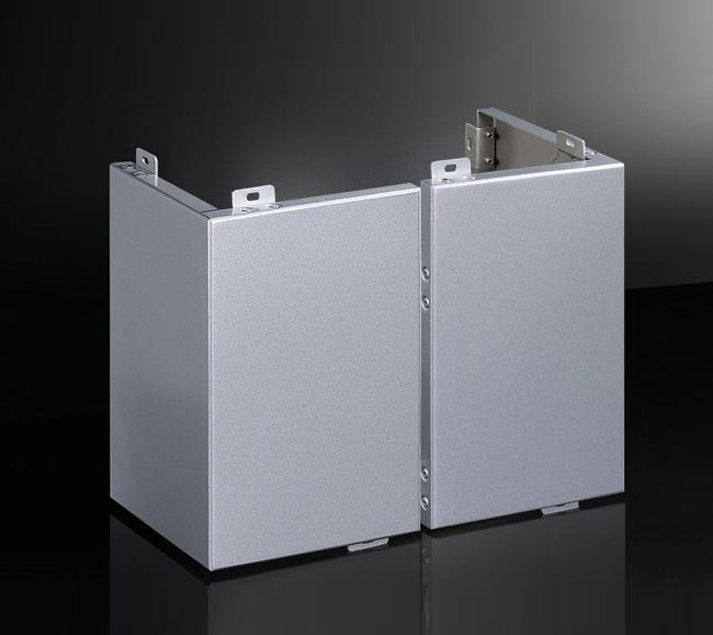 包柱鋁單板的厚度一般為1.5mm-3.0mm,常規(guī)圓弧半徑為300mm和500mm。產(chǎn)品結(jié)構(gòu)主要由面板、加強(qiáng)筋和角碼組成。包柱鋁單板的安裝方法有留縫和密縫兩種。